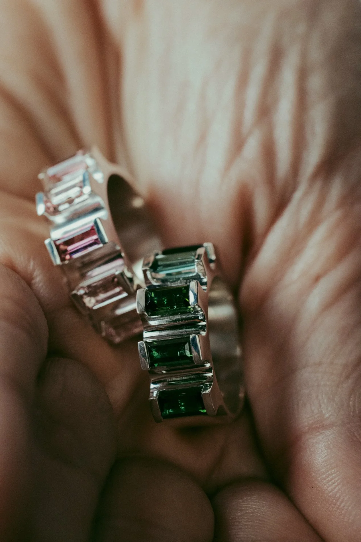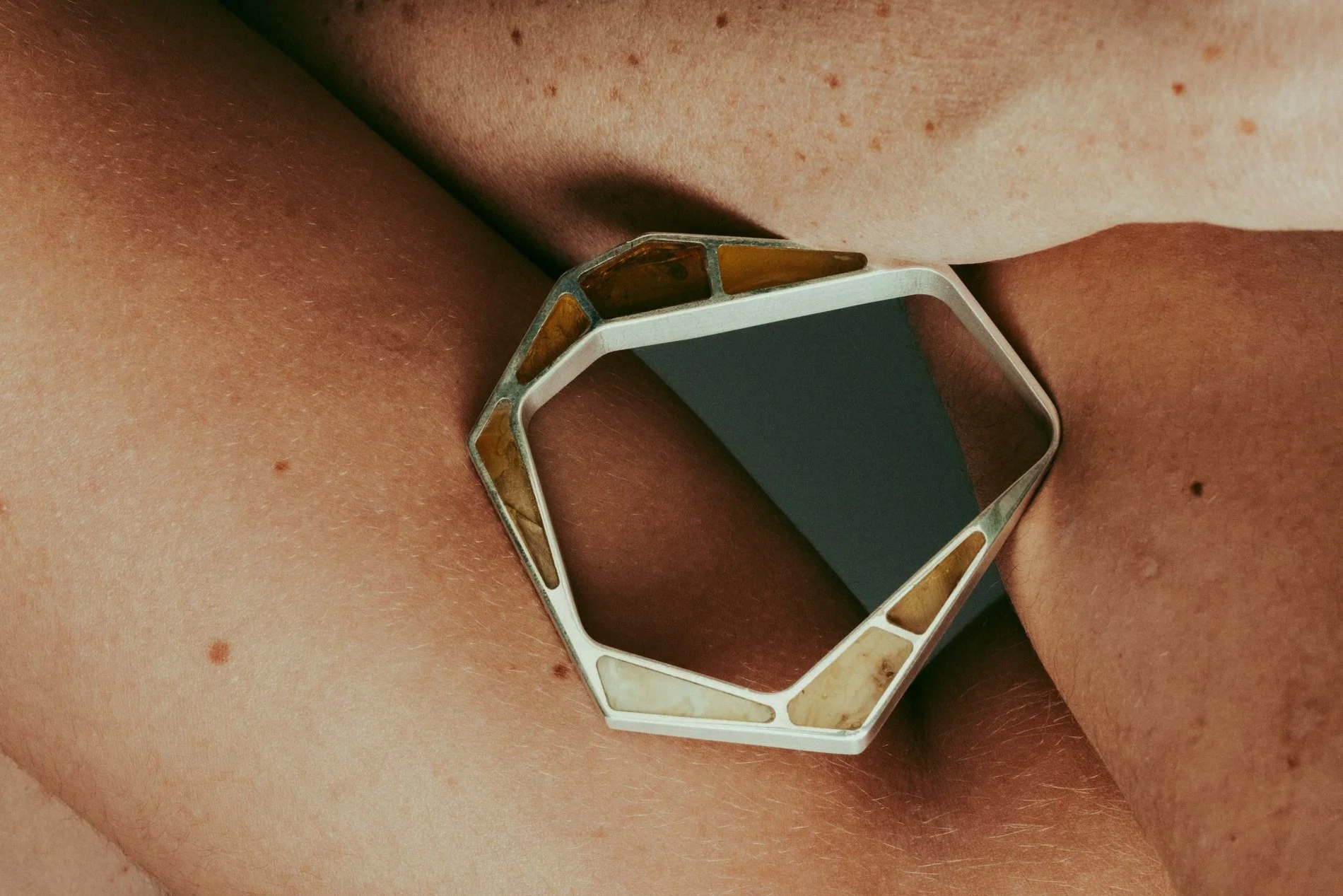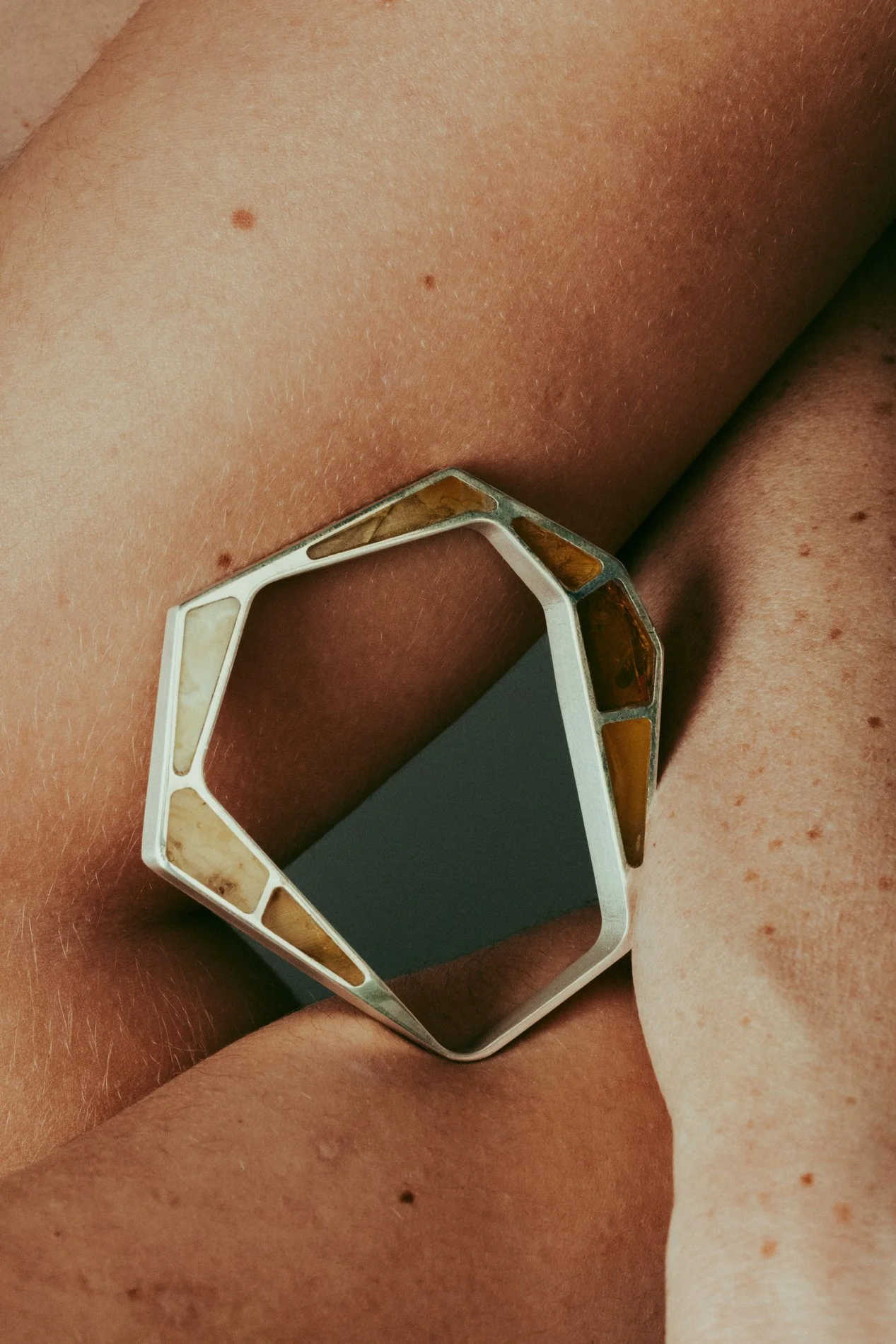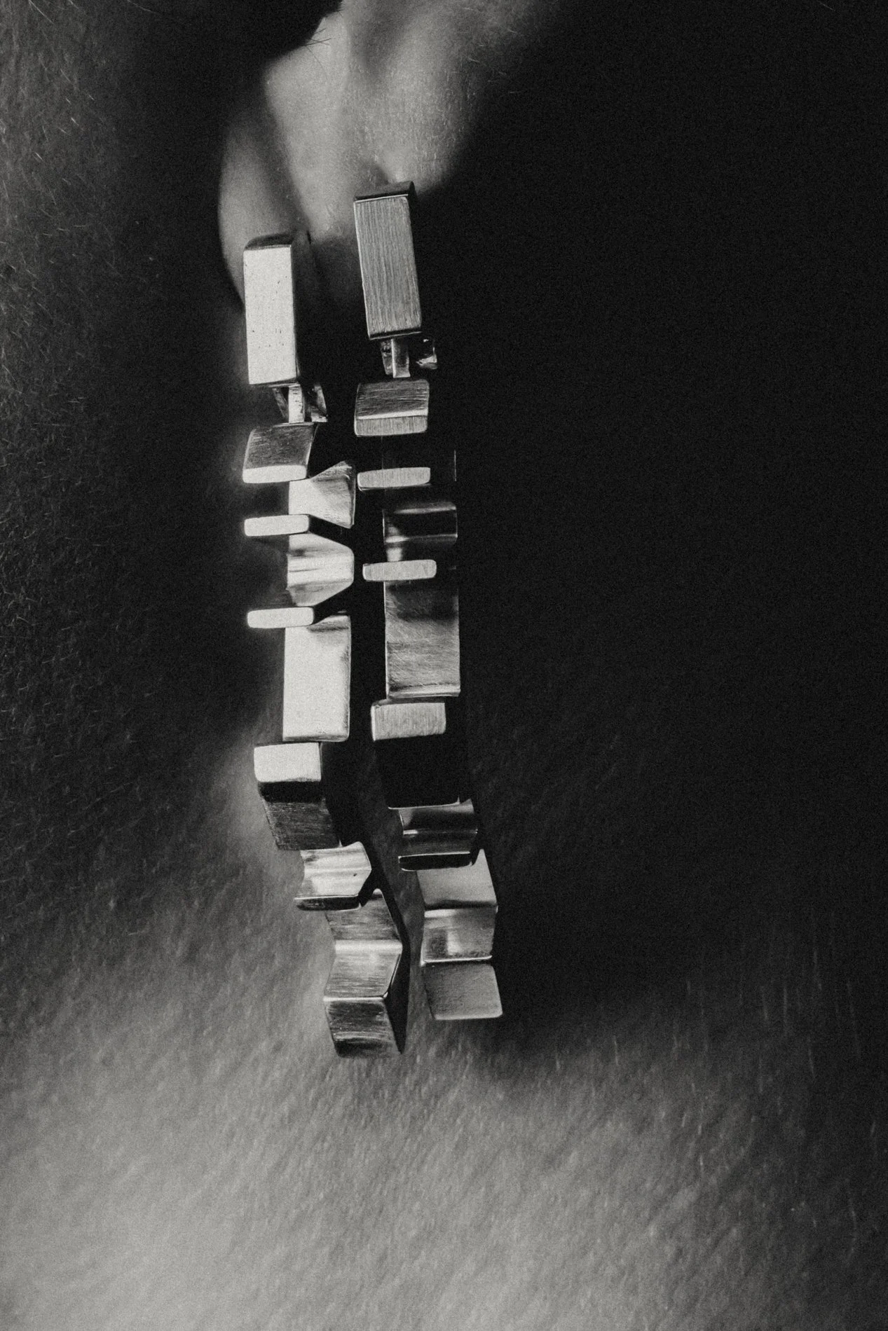 Engrenages is Sajfrt’s second jewellery family — a sculptural exploration of interlocking forms, designed to move with the body. Rooted in architectural thinking and emotional resonance, Engrenages expresses connection, tension, and flow. Handcrafted in Brussels with precision, each piece is a wearable mechanism, alive with movement and form.